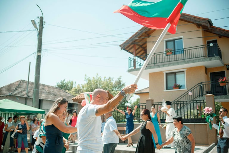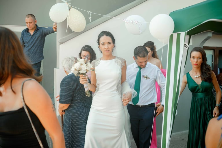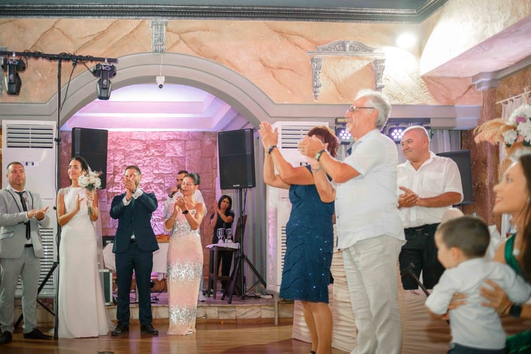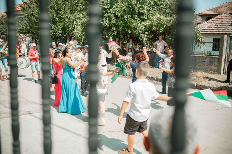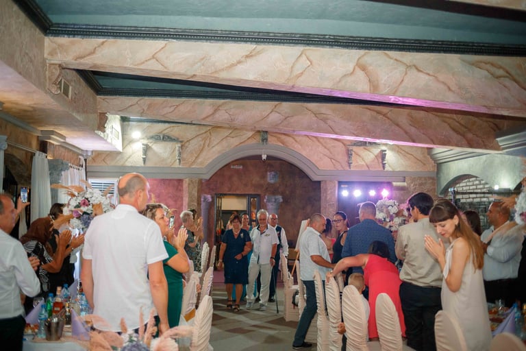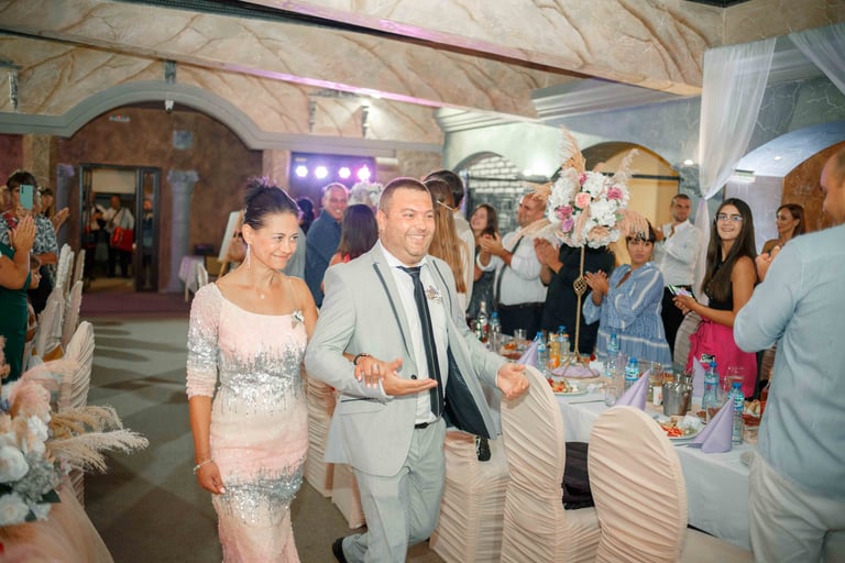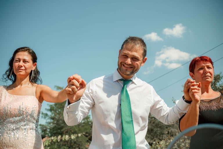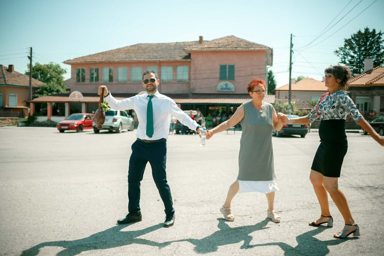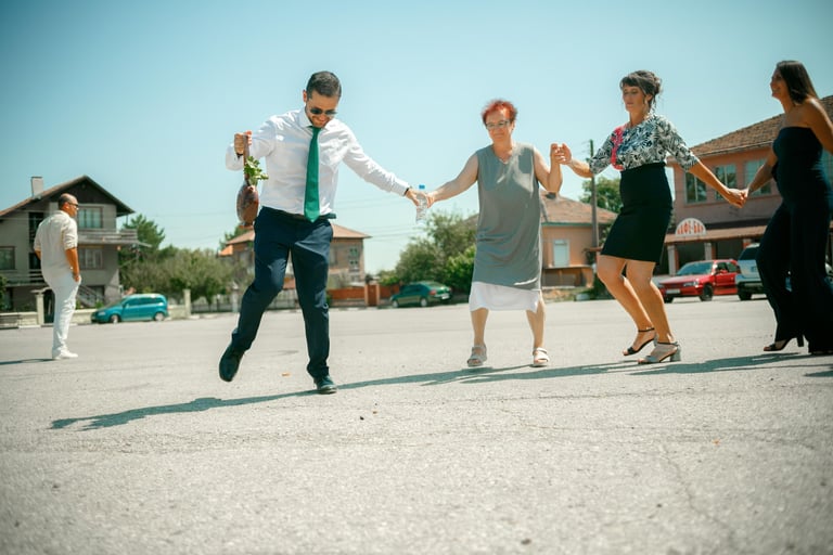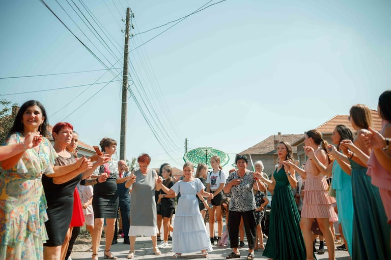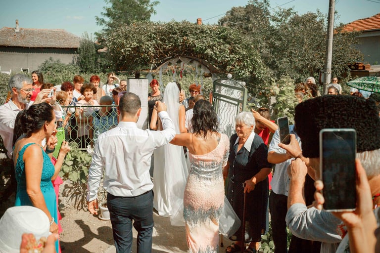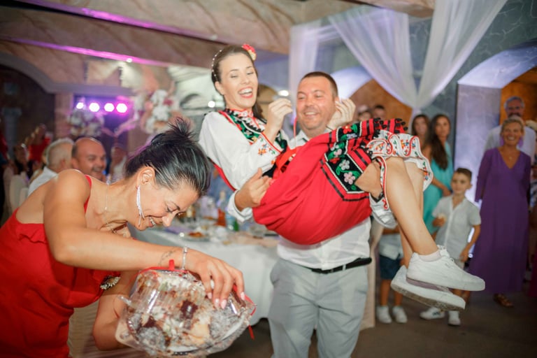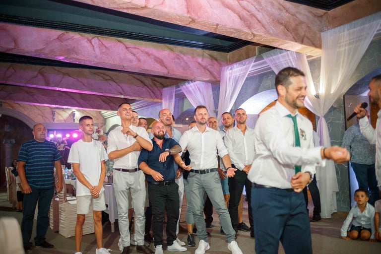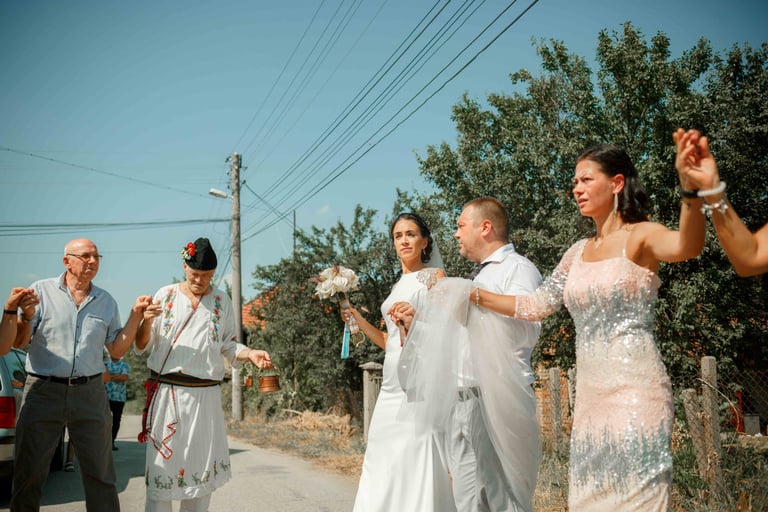 Picking up the bride, traditional dance, and photos with the guests from the groom's hometown.